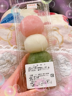 こんばんは!りおです😌 この前いただいた 三色団子🍡 大きいwww 1番下がヨモギだた🥹 三色団子団子て春だよねぇ🥹