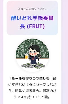えまちゃんに教えてもらった酒タイプ診断🥃 酔いどれ学級委員長wwwww なにこれwwww 酔っても基本記憶はあるよん🙆♀️